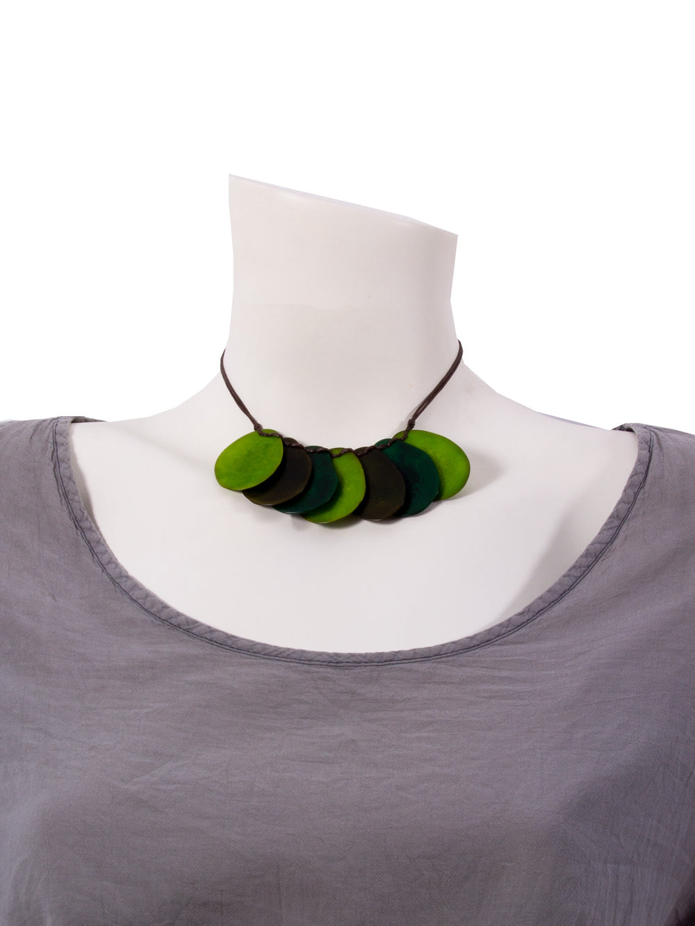 You get an elegant accessory that goes with countless outfits. It is made from the tagua nut and shaped into a very individual piece with a fashionable look. Each necklace is unique due to the different structures of the raw material. Your necklace may vary a little from the product photo.