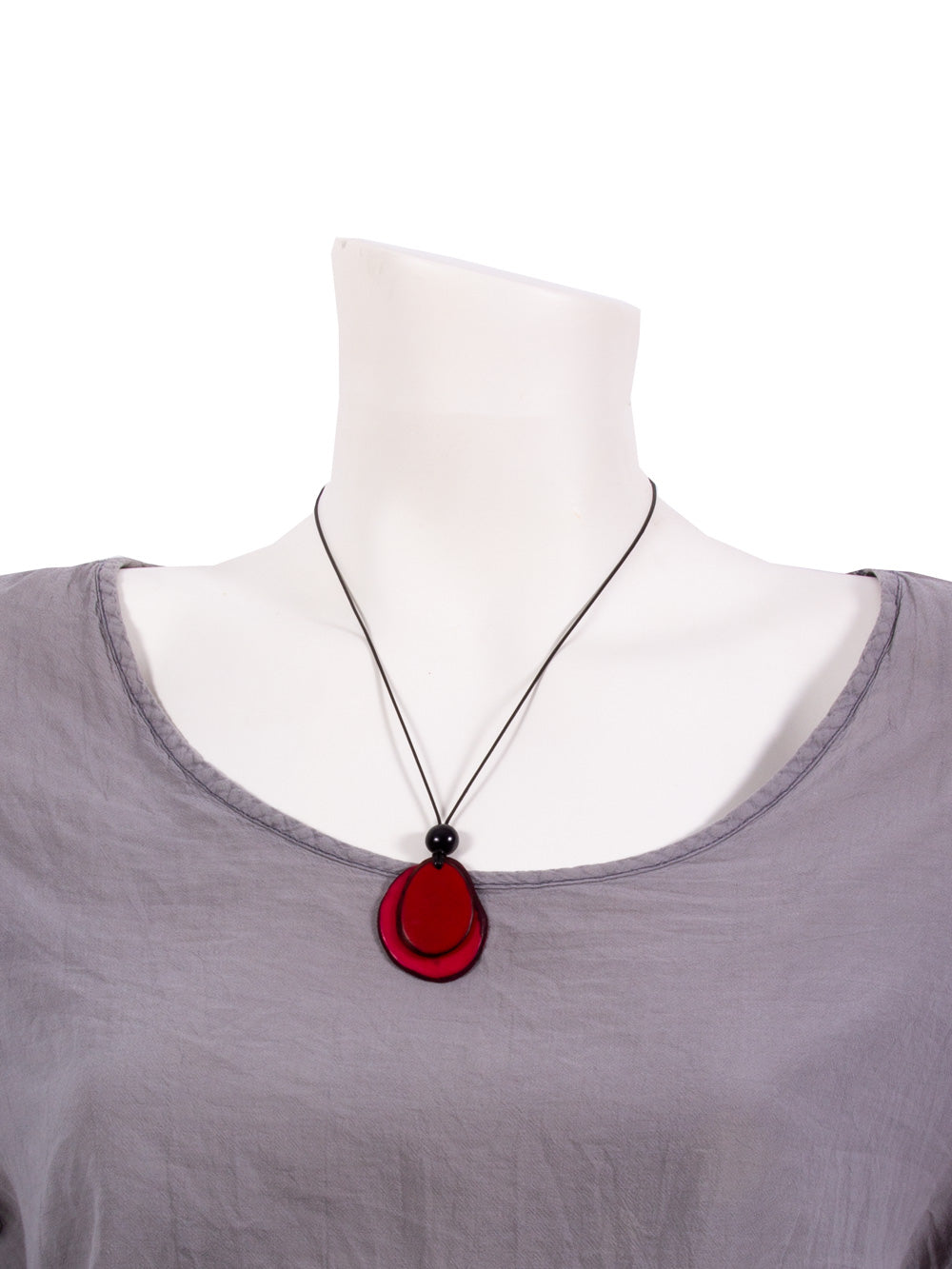 You get an elegant accessory that goes with countless outfits. It is made from the tagua nut and shaped into a very individual piece with a fashionable look. Each necklace is unique due to the different structures of the raw material. Your necklace may vary a little from the product photo.