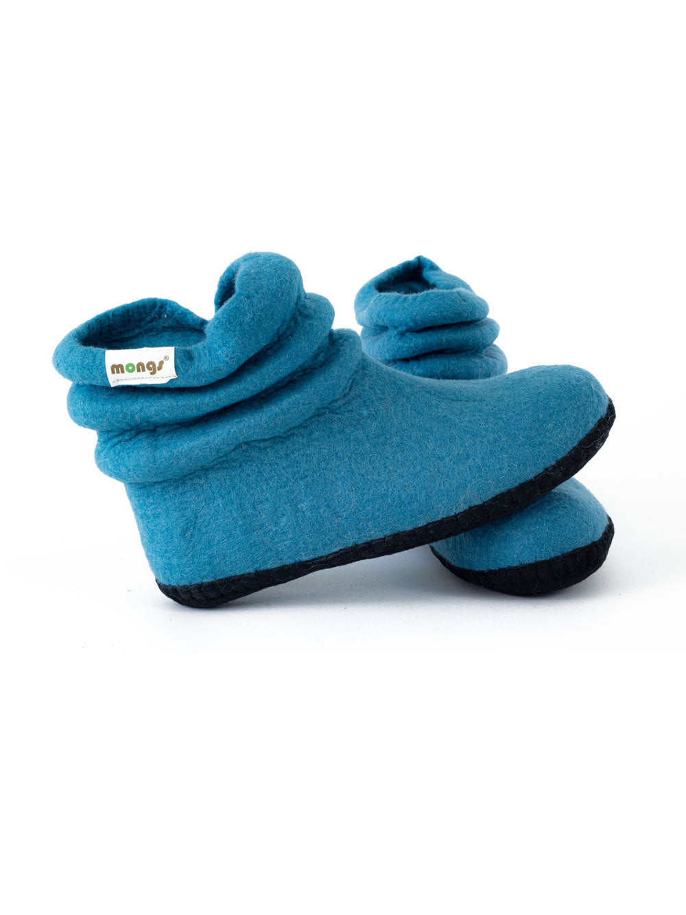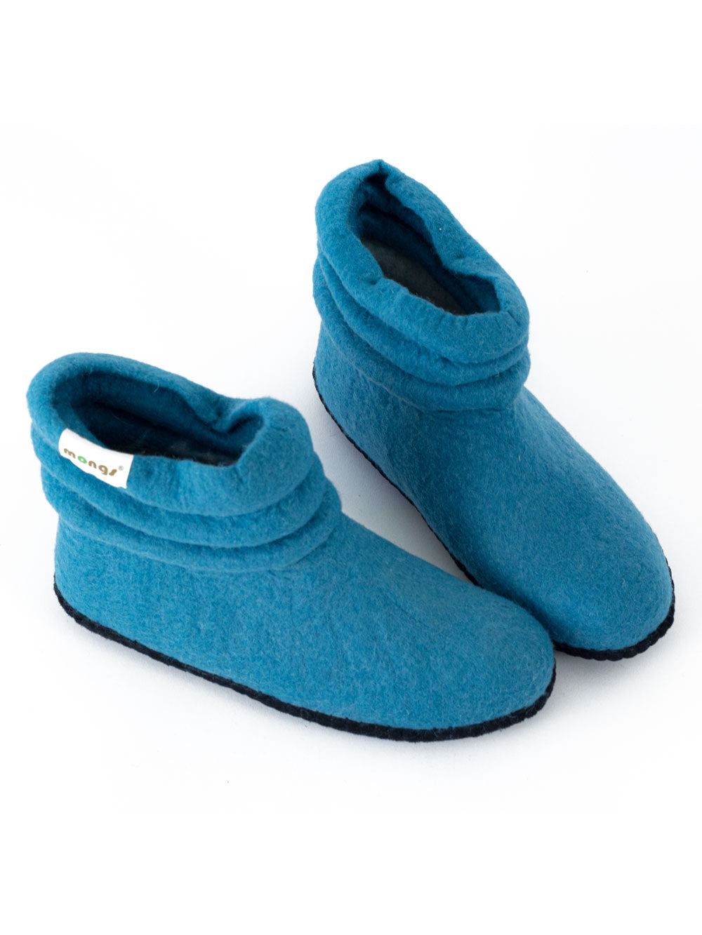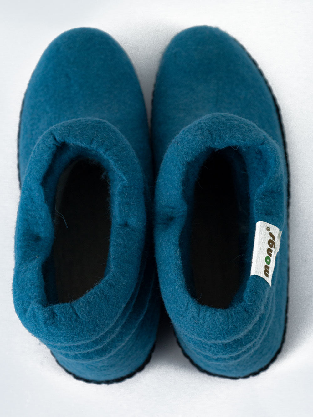 These trendy felt slippers, with a compressed shaft, are seamlessly felted directly in Mongolia using proven Mongolian craftsmanship. By using pure Merino virgin wool, the felt is heat-regulating, which means – no sweaty feet, but warm feet! The robust suede sole has an anti-slip effect, which ensures a safe and comfortable walk. Mongs slippers are available in different colors and models for young and old.Ecologically and fairly handmade in Mongolia