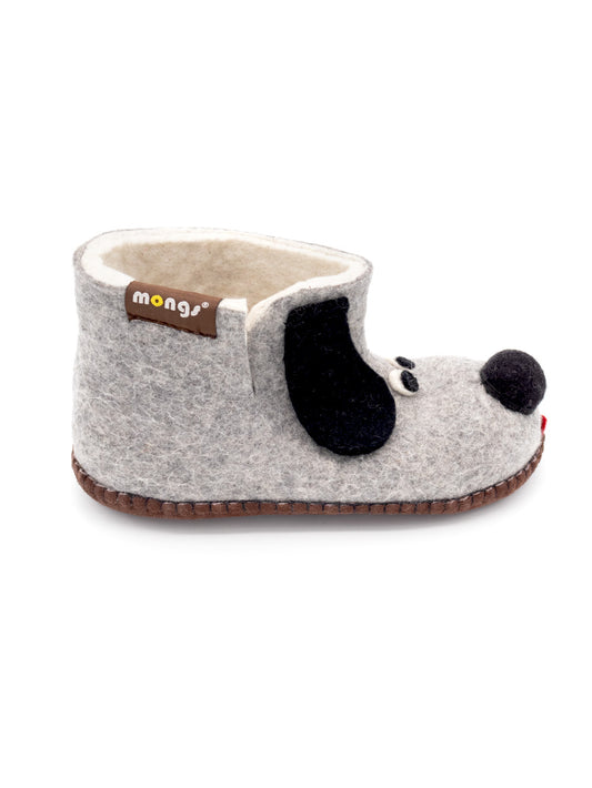 Mini mongs Uni grün mit Blatt - Kinderhausschuhe/Kinderpantoffeln