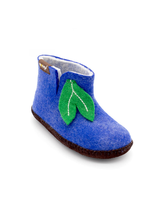 Mini mongs Uni violett mit Blatt - Kinderhausschuhe/Kinderpantoffeln