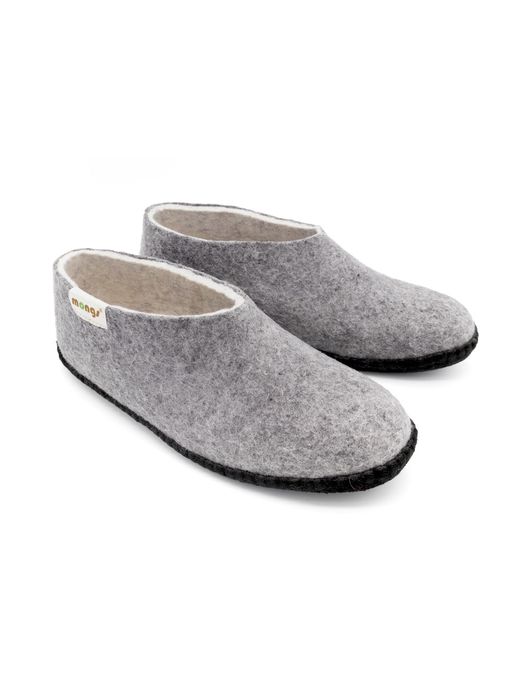 Diese Filzpantoffeln werden ausschließlich aus natürlichen Rohstoffen hergestellt. Zum Filzen wird Wolle von Merinoschafen aus der Mongolei verwendet, was sich in der außergewöhnlichen Filzqualität widerspiegelt. Die Farben sind biologisch und werden regelmäßig im Labor auf Schadstoffe geprüft. Zu den Herstellern in der Mongolei wird ein partnerschaftliches Verhältnis gepflegt und sehr faire Preise für die Herstellung dieser besonderen Pantoffeln gezahlt.