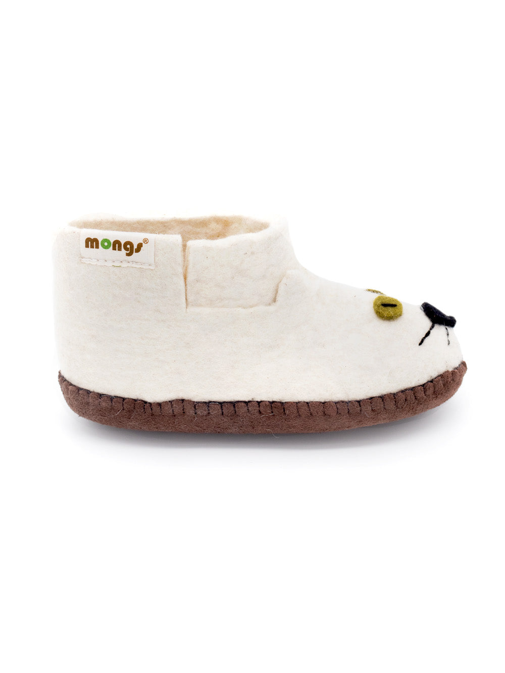 Diese Filzhausschuhe im Kätzchen-Design wurden mit 100% Merinowolle hergestellt. Handgefilzt wurden diese Hausschuhe in der Mongolei nach alter mongolischer Handwerkskunst und kommen ganz ohne störende Nähte aus. Zudem sind die kleinen Babyschuhe frei von Chemikalien sowie Azofarbstoffen und stammen aus fairem Handel.