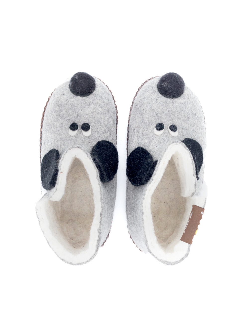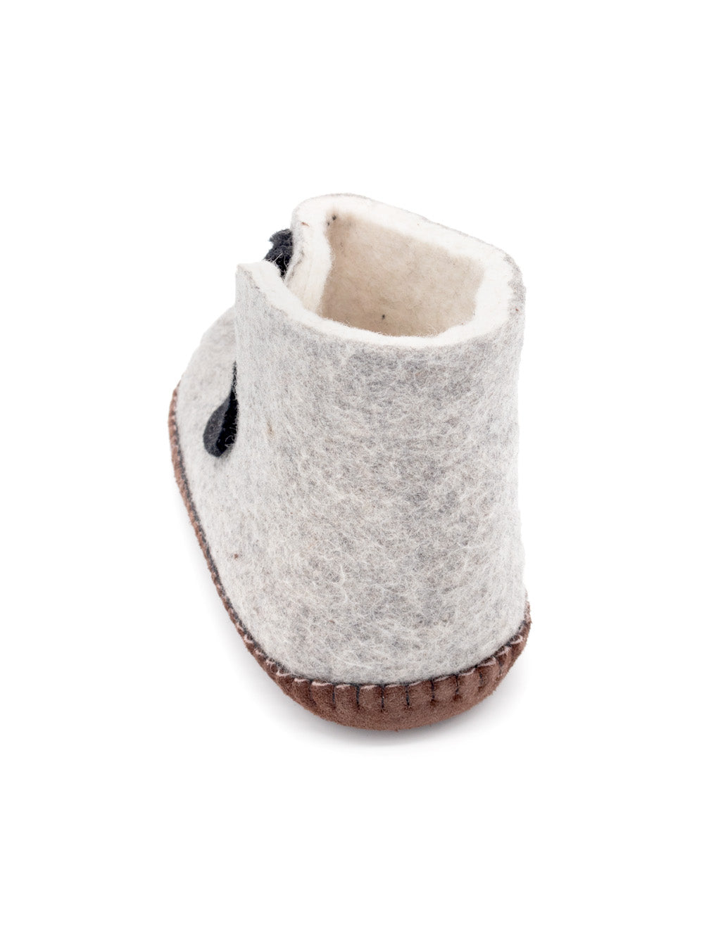 Durch die Fertigung aus reiner Merino Schurwolle wirkt dieser hochwertige Hausschuh wärmeregulierend, d.h. keine schwitzigen Füße, aber warme Füße! Die robuste Wildledersohle ist außerdem rutschhemmend, sodass die Schühchen zudem gut für den Kindergarten geeignet sind. Genau wie die Varianten für die Eltern, sind die Pantoffeln handgefilzt.