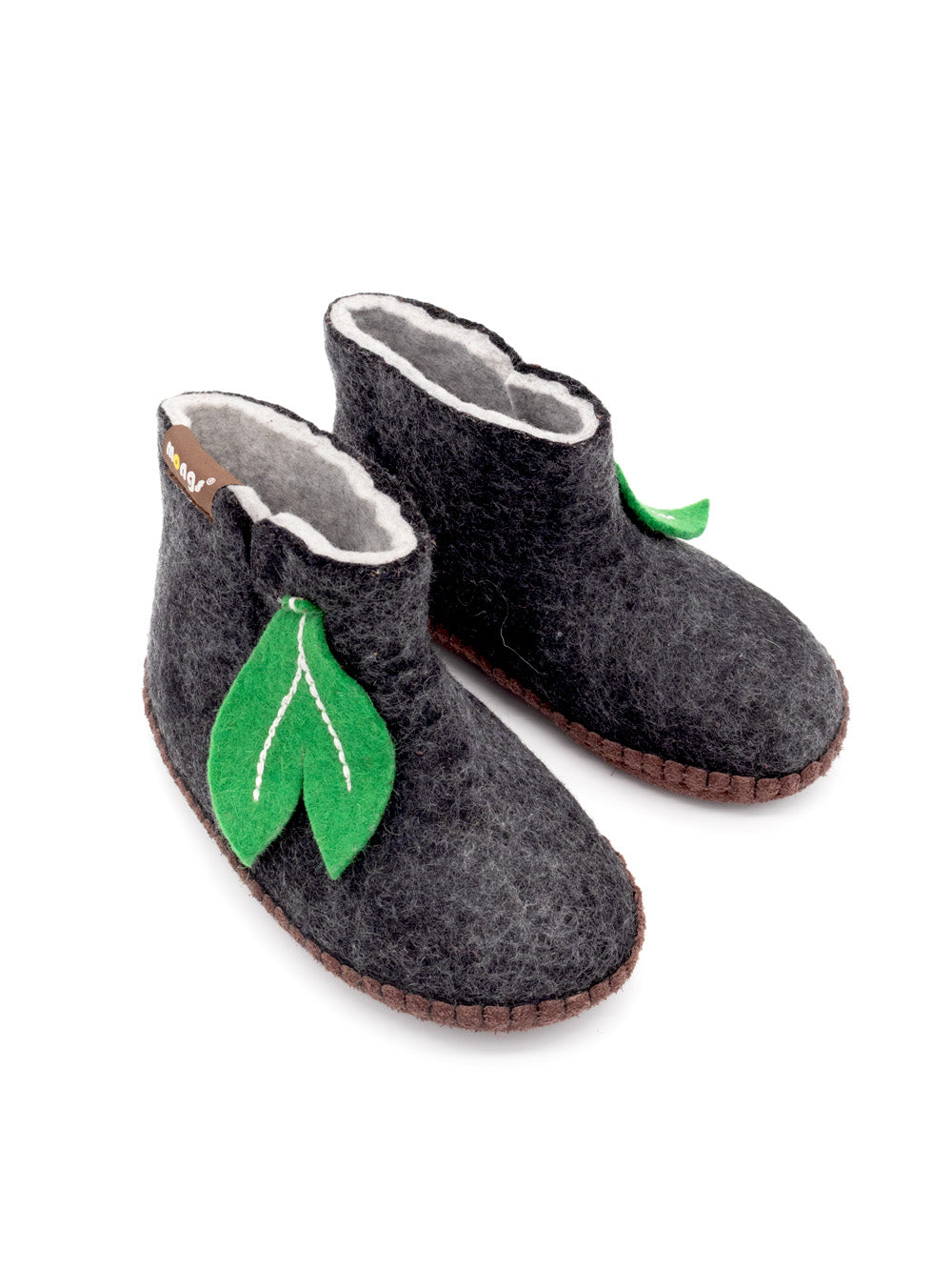 Für diese tollen Pantoffeln kommen ausschließlich natürliche Rohstoffe zum Einsatz. Der Filz wird außerdem mit biologischen Farben eingefärbt.