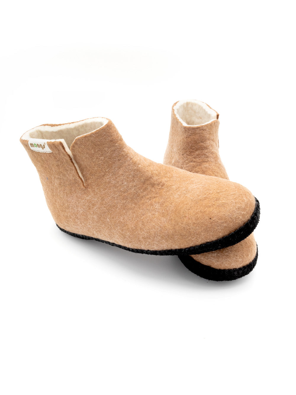 Diese Filzpantoffeln werden ausschließlich aus natürlichen Rohstoffen hergestellt. Zum Filzen wird Wolle von Merinoschafen aus der Mongolei verwendet, was sich in der außergewöhnlichen Filzqualität widerspiegelt. Die Farben sind biologisch und werden regelmäßig im Labor auf Schadstoffe geprüft. Zu den Herstellern in der Mongolei wird ein partnerschaftliches Verhältnis gepflegt und sehr faire Preise für die Herstellung dieser besonderen Pantoffeln gezahlt.