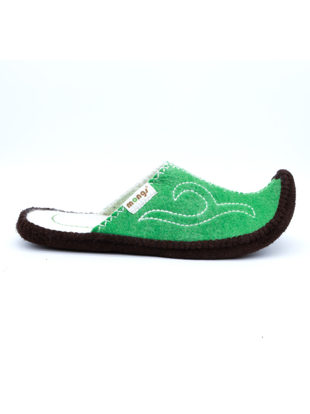 Diese Filzpantoffeln werden ausschließlich aus natürlichen Rohstoffen hergestellt. Zum Filzen wird Wolle von Merinoschafen aus der Mongolei verwendet, was sich in der außergewöhnlichen Filzqualität widerspiegelt. Die Farben sind biologisch und werden regelmäßig im Labor auf Schadstoffe geprüft. Zu den Herstellern in der Mongolei wird ein partnerschaftliches Verhältnis gepflegt und sehr faire Preise für die Herstellung dieser besonderen Pantoffeln gezahlt.