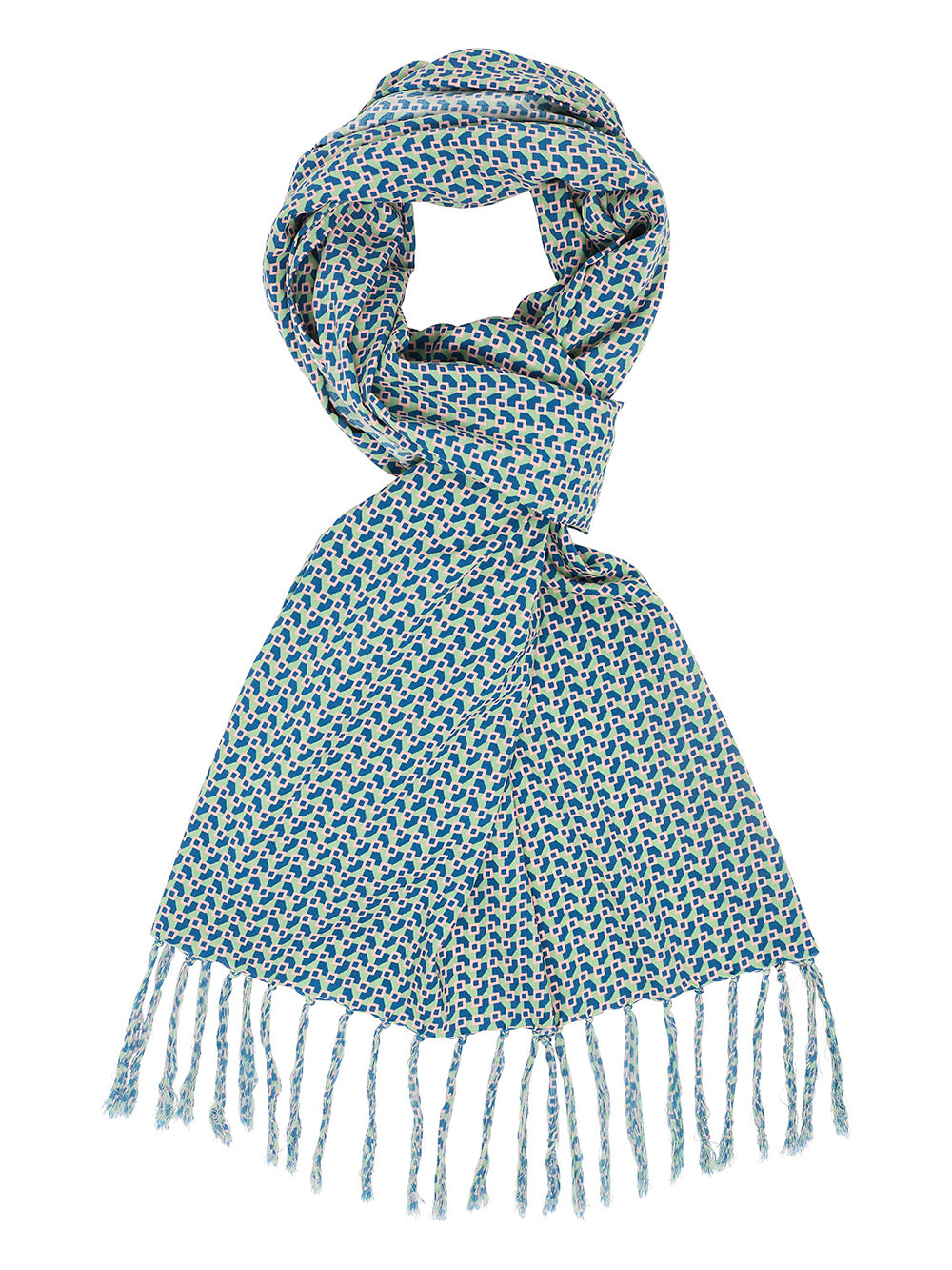 Dieses gemustertes Tuch verleiht deinen einfarbigen Outfits eine lebendige Note oder harmoniert perfekt mit anderen Designs aus unserer Kollektion. Die kurzen Enden sind mit langen Fransen und Knoten verziert und verleihen dem Accessoire eine verspielte Note. Es besteht aus weicher EcoVero™ Viskose, die sich angenehm anfühlt.