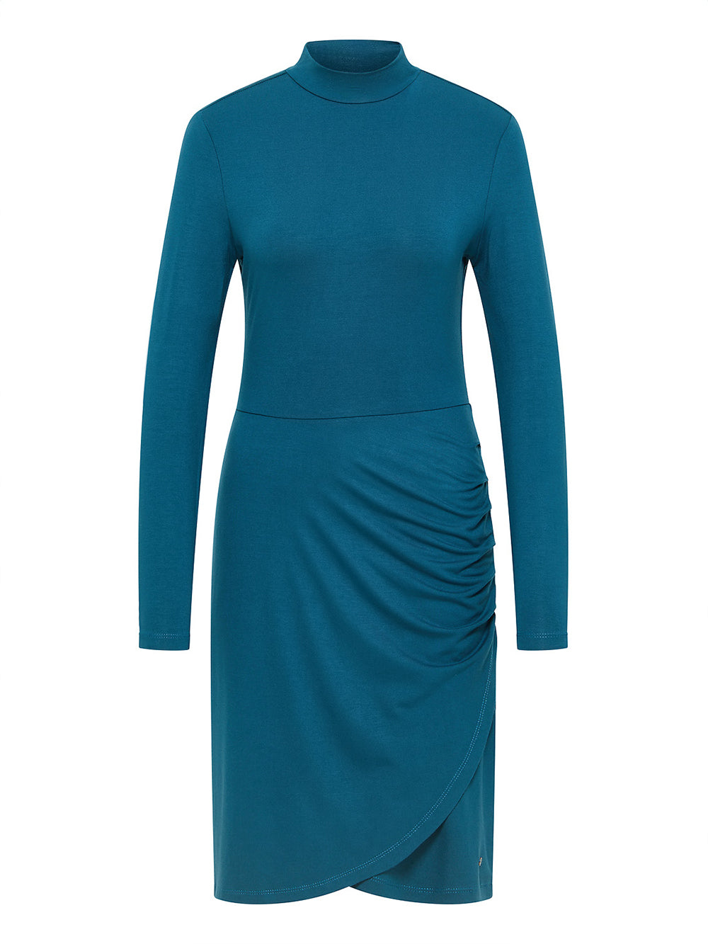 Dieses elegante Kleid aus seidenfeinem Stoff ist ein vielseitiges Must-Have für jeden Anlass. Seitliche Raffungen und ein angedeuteter Rollkragen verleihen dem Design das gewisse Etwas. Die Viskose sorgt für ein angenehmes Tragegefühl und höchsten Komfort. Dank des femininen Schnitts ist dieses Kleid nicht nur alltagstauglich, sondern auch die perfekte Wahl für schickere Anlässe. Erlebe nachhaltige Mode mit Stil – mit diesem feminin geschnittenen Kleid aus hochwertiger ECOVEROTM Viskose.