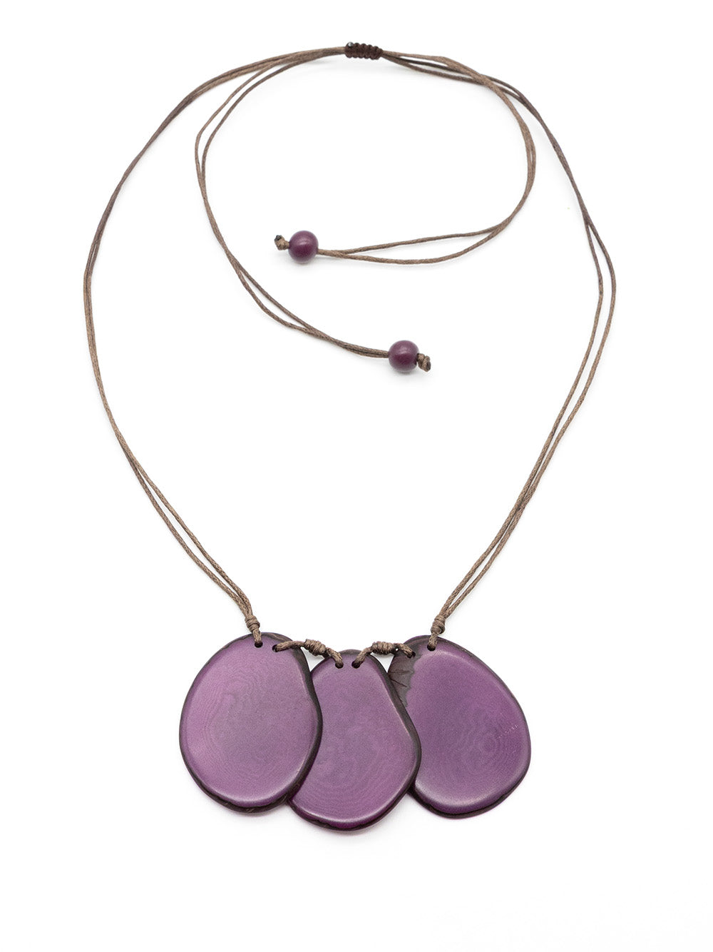 Die Tagua-Nuss ist der Samen einer Palme, die in den tropischen Regenwäldern Südamerikas zu Hause ist. „Phytelephasmacrocarpa“ ist der wissenschaftliche Name dieser Pflanze, was abgeleitet soviel wie pflanzliches Elfenbein bedeutet. Die Konsistenz, das Aussehen der Tagua und ihr cremeweißer Farbton sind dem Elfenbein sehr ähnlich. Die Tagua bietet sich daher ideal als tier- und umweltfreundlicher Ersatz für tierisches Elfenbein an. Auch überrascht das leichte Gewicht der verarbeiteten Steinnuss und durch seine anschmiegsame, warme Struktur lässt sich das Naturmaterial angenehm auf der Haut tragen.