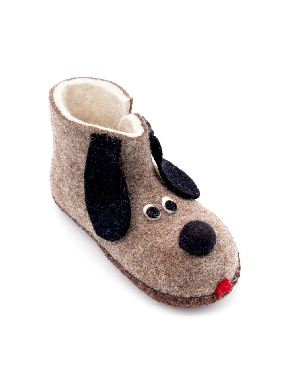 Diese Filzhausschuhe im Hündchen-Design wurden mit 100% Merinowolle hergestellt. Handgefilzt wurden diese Hausschuhe in der Mongolei nach alter mongolischer Handwerkskunst und kommen ganz ohne störende Nähte aus. Zudem sind die kleinen Babyschuhe frei von Chemikalien sowie Azofarbstoffen und stammen aus fairem Handel.