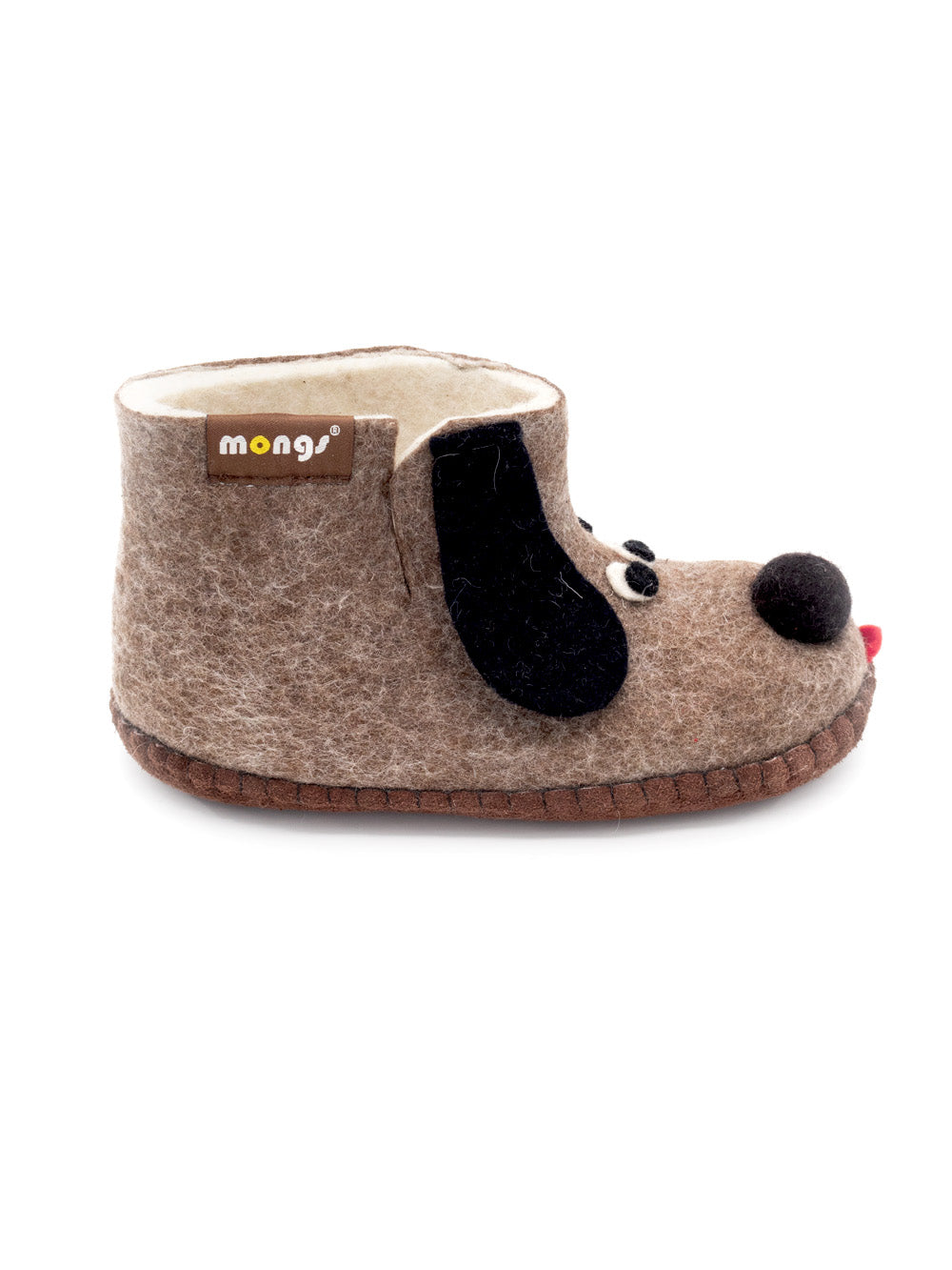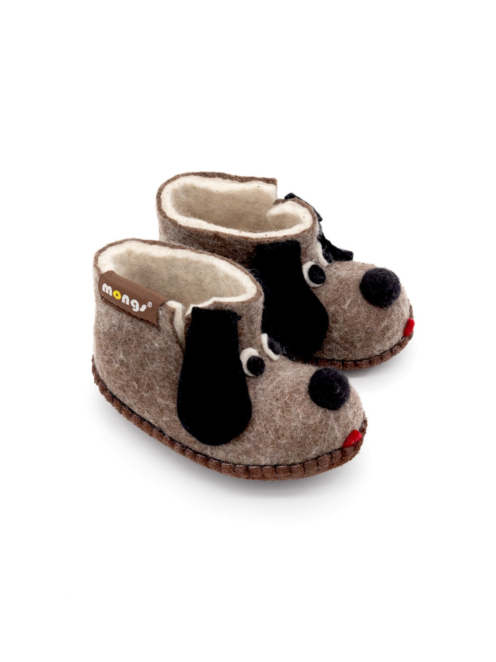 Kinderhausschuhe Dog Braun aus Merinowolle